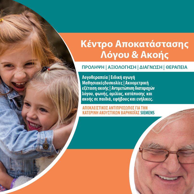 φήβους και ενήλικες. Λογοθεραπεία, ειδική αγωγή, ακοομετρική εξέταση ακοής, επιλογή ακουστικών βαρηκοΐας Siemens.